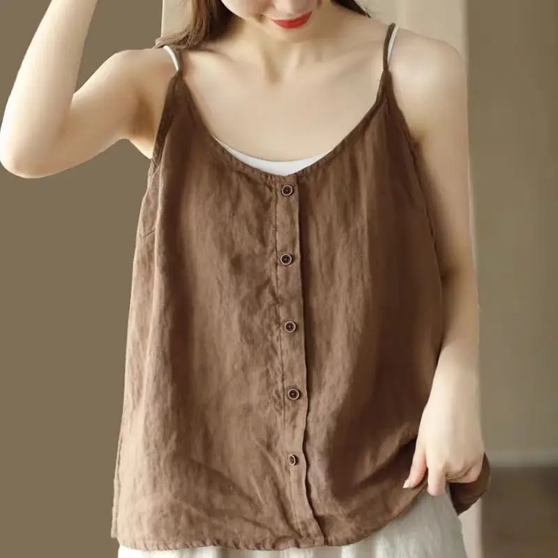 - Sleeveless linen tops for hot weather and layering flexibility